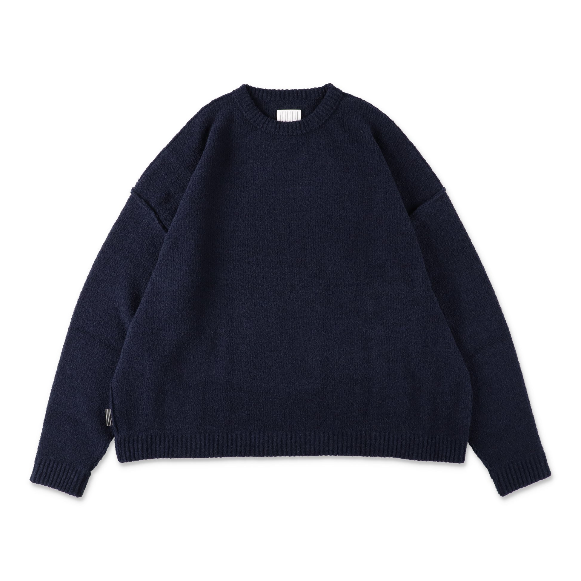 S.F.C (エスエフシー)のPILE LS CREW / Navyになります。SFC のクルースウェットをベースに作成したオーバーサイズのクルーネックニット。素材には高級タオルに使用される、コットンのソフトな風合いを生かした綿ブークレ系を使用。空気を含み、柔らかい肌触り、ふっくらとした編地が特徴のニットです。成型で編立となりハサミをいっさい使わずに、商品を作成しています。