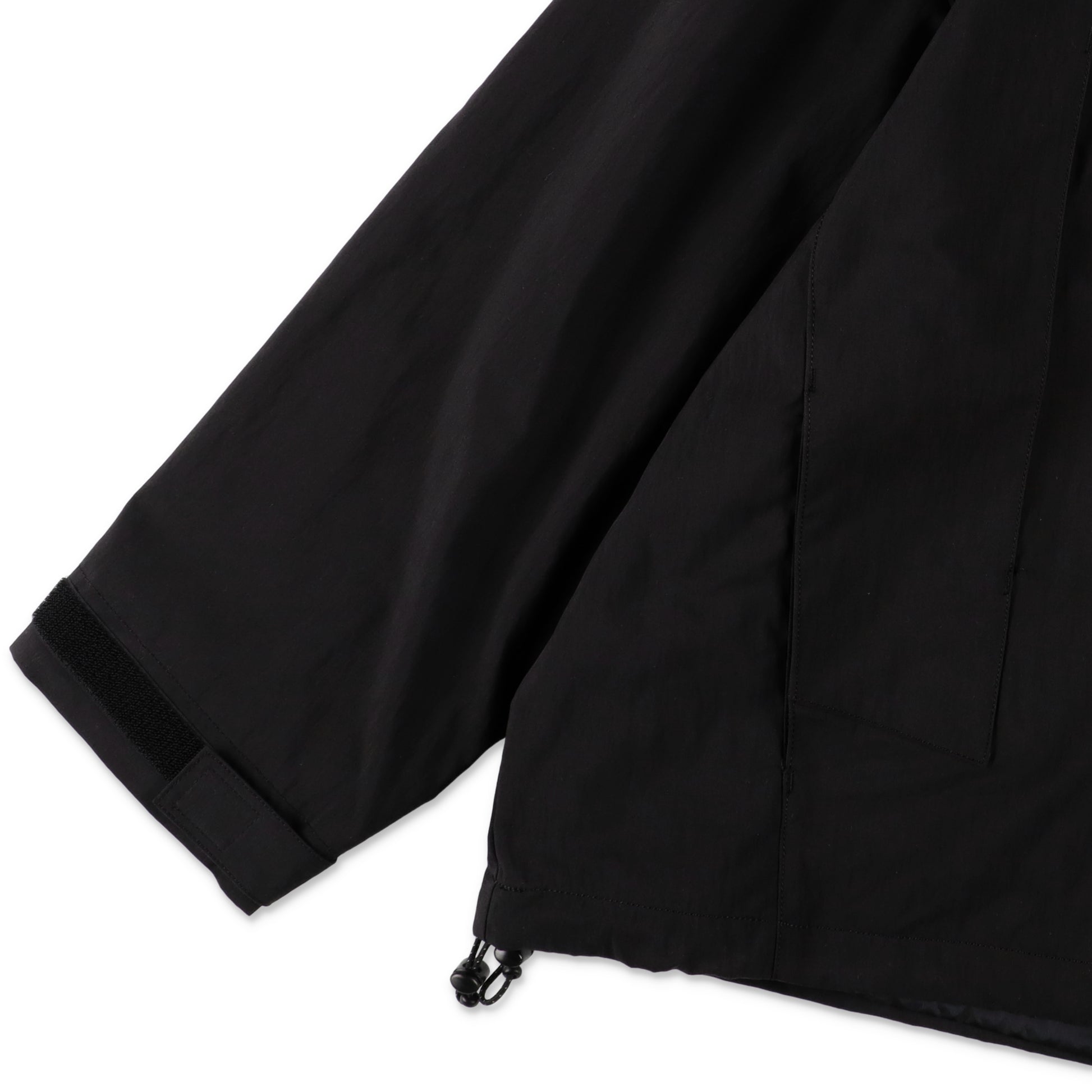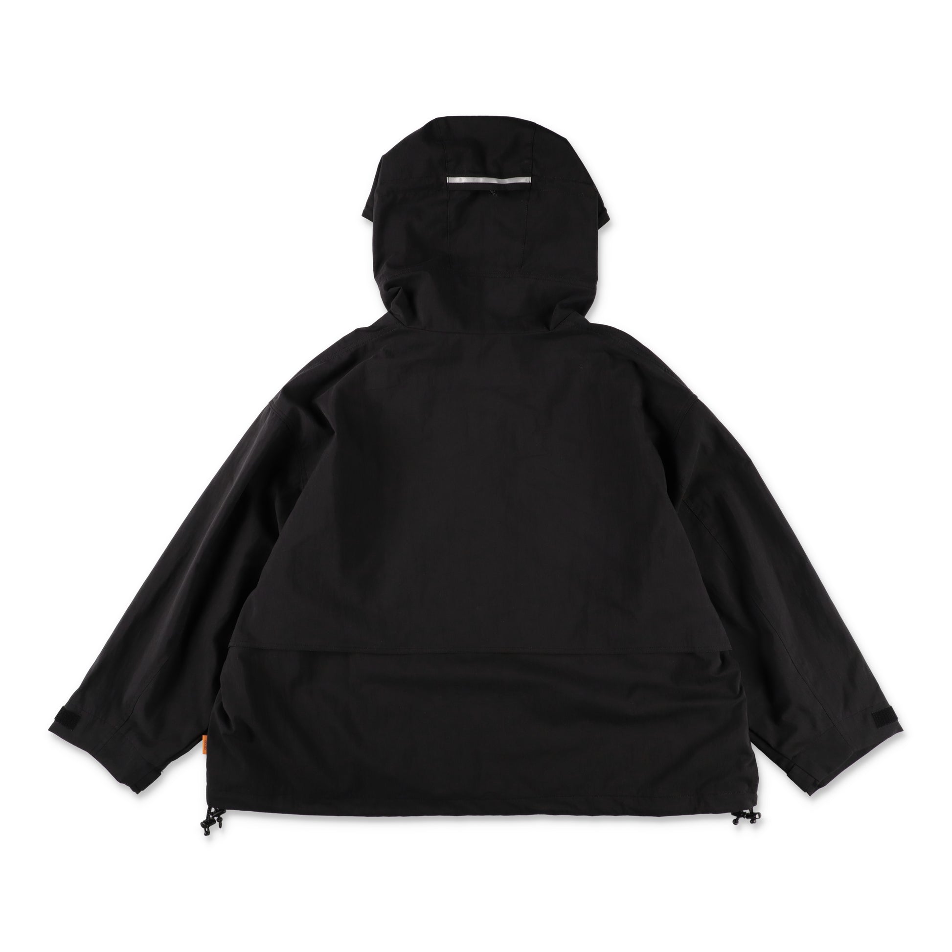 大きいフロントジップポケットとフードが特徴のオーバーサイズのプルオーバーフーディー。フードや裾もドローコードでアレンジ可能、裾の内側にはベンチレーションが付属します。素材はタテ糸にコットン、ヨコ糸にナイロンを使用した、交織のギャバを使用。ナチュラルなシワ感や柔らかい風合いが特徴の素材です。
